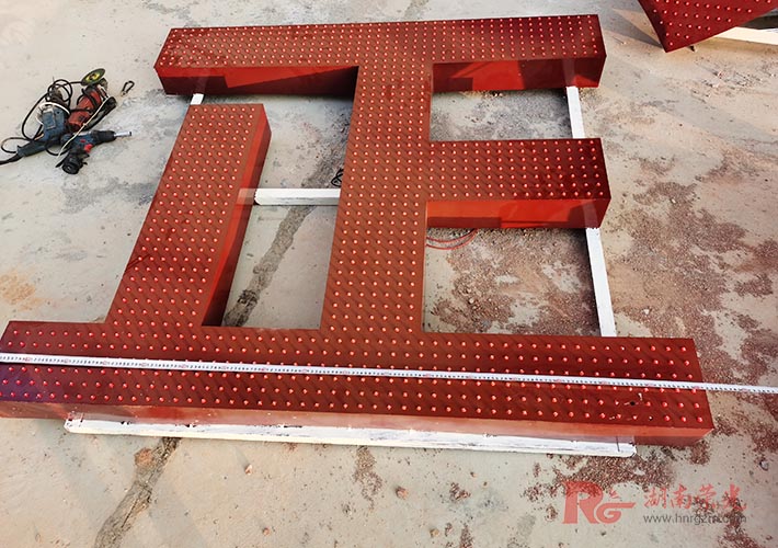 沖孔發(fā)光字,顧名思義,使用的是金屬板材通過機(jī)器沖孔焊接而成的發(fā)光字,光源采用的是9MMLED防水燈珠,長(zhǎng)時(shí)間戶外使用防水防曬。顏色以及發(fā)光亮度均有極佳表現(xiàn)。