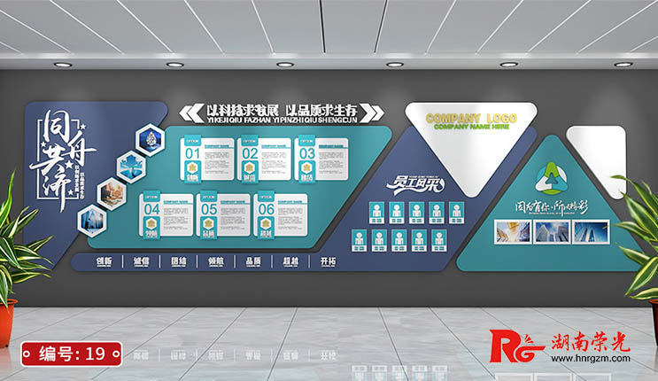 布局上也要規(guī)范合理,企業(yè)文化墻版塊間劃分清晰也是很有必要的,這樣領(lǐng)導(dǎo)或來賓參觀貴公司企業(yè)的時候,能夠一目了然。主題鮮明。