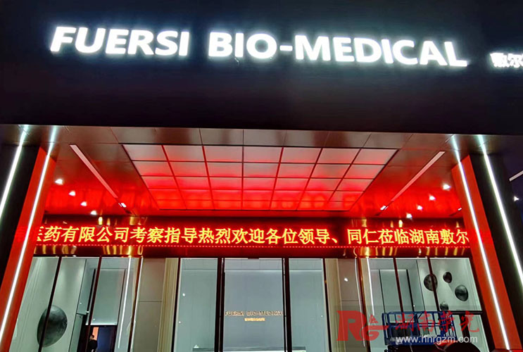 安裝地點位于寧鄉(xiāng)敷爾斯生物醫(yī)藥公司,門頭LED顯示屏。