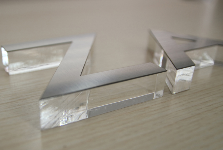 水晶字是一種亞克力實心制作的字體,他的厚度通常由底板(透明)和面板(有色亞克力或不銹鋼等材質(zhì))組成,越厚的水晶字,它的質(zhì)感和重量也就越重。