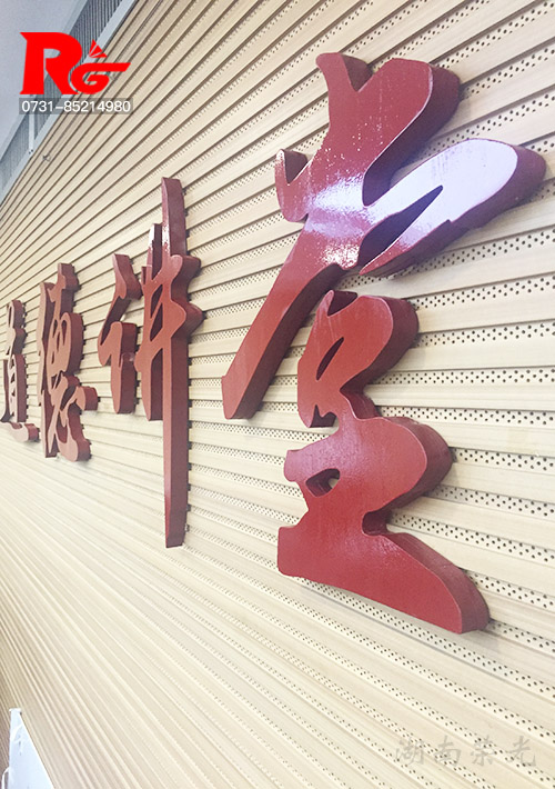 長沙市政府組織部道德講堂背景墻立體字制作,字體采用25MM實木雕刻,烤漆工藝制作。